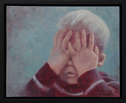 DESCRIPTION: Original oil painting on a 1" deep cradled board. Framed in a 3/4" faced black floater frame.