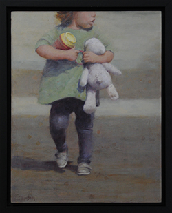 DESCRIPTION: Original oil painting on a 1" deep cradled board. Framed in a 3/4" faced black floater frame.