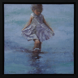 DESCRIPTION: Original oil painting on a 1" deep cradled board. Framed in a 3/4" faced black floater frame.